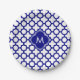 Monogram Navy Blue Quatrefoil Pattern Paper Plate