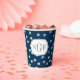 Monogram Navy Blue Silver Glitter Dot Pattern Paper Cups