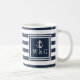 Monogram Navy Blue Stripe Nautical Boat Anchor Coffee Mug