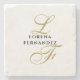 Elegant refined feminine chic stone coaster, personalizable customisable with monogram, initial letters and name. Classy timeless , elegant gold calligraphy script handwritten initial letters, and stylish black typography for the name. The background is transparent, so you can see the beauty of the natural stone texture and nuances. Useful kitchen and dining, bar accessory, for you or as a thoughtful custom gift for her. Neutral, minimalist, easy to match in any ambient, as home decor accent piece. It has a very attractive affordable price, a gift idea under 20 dollars, even under 15 dollars.