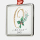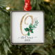 Monogram O Gold Glitter Christmas Holly Foliage Metal Ornament