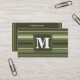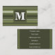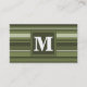 Monogram olive green stripes business card