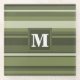 Monogram olive green stripes glass coaster