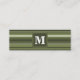 Monogram olive green stripes mini business card