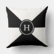 Modern monogram on abstract black and white geometric shapes Pillow. H letter can be personalised.