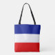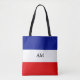 Monogram on Blue Red and White Striped Tote Bag. Monogram only on the front side.