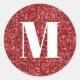 Monogram on Faux Ruby Red Glitter Classic Round Sticker
