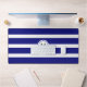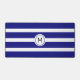 Elegant monogram on striped, blue & white Desk Mat. Elegant modern design.