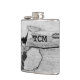 The flask itself is fine. It’s a cheap flask, obviously bought in bulk, however am prepared to overlook that. Given that it is a personalized item, I would have liked to have seen gift boxing instead of the generic packaging. Terrible printing, and/or quality. It’s a cheap, tacky vinyl. It is not cut straight and is also applied in a way that it is overhanging the bottom, causing the glue to catch on items and it will eventually roll and tear, damaging the wrap.