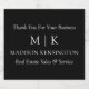 Modern Minimalist Business Thank You sparkling wine Bottle Label. Black & White or choose your custom colours. Perfect for small business, online sellers, company brands, real estate sales agents, hospitality and more. Easy to personalise with your monogram initials, business name and information, job title, slogan or even add your logo or personal brand design.