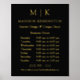 Modern Minimalist Gold Foil Print Poster. Black Background or choose your custom colour. Perfect for small business, company brands, self employed, mall kiosks, retail stores, trades shows & events, beauty salons, spas, caterers, bakeries, coffee cafes, restaurants, bars and more. Easy to personalise with your monogram initials, business name and information, photos, slogan or even add your logo or personal brand design.