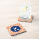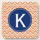 Monogrammed orange chevron pattern with royal blue accent cork coaster. Add your monogram.