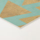 A tribal, boho design in a gold and teal geometric pattern.