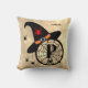 Monogram P Halloween Sky Witch Spiders Name Cushion