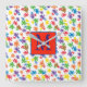 A trendy paint splatter design, this clock is colourful and vibrant. Featuring brown, red, yellow, blue green paint splotches on a white background, you can customise the middle with a monogram initial. Place your order today!