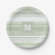 Monogram pale green stripes paper plate