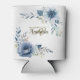 Monogram Party Dusty Blue Watercolor Flower Silver Can Cooler