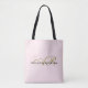 Elegant refined feminine chic all over print tote bag, personalizable customisable with monogram, initial letters and name. Soft stylish pastel blush pink background, elegant gold calligraphy script handwritten initial letters, and classy black typography for the name. Beautiful and timeless, for you or as a thoughtful custom gift for her. Useful fashionable accessory and very affordable, a gift under 50 dollars, even under 30 dollars.