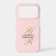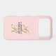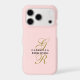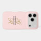 Elegant refined premium look chic iPhone case, personalizable customisable with monogram, initial letters and name. Classy feminine, girly, pretty pastel blush pink background, elegant gold calligraphy script handwritten initial letters, and stylish black typography for the name. Beautiful simple monochromatic, minimalist minimal design, and useful, for protecting your cellphone or as a thoughtful custom electronic tech accessory gift for her, under 30 dollars For personal use or as a professional business phone case. Suitable as a birthday, Mother’s Day, Christmas, graduation, even retirement present. Or for your company employees for example.