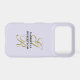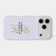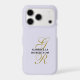 Elegant refined premium look chic iPhone case, personalizable customizable with monogram, initial letters and name. Trendy soft pastel lavender purple delicate background, elegant gold calligraphy script handwritten initial letters, and stylish black typography for the name. Beautiful, monochromatic, minimalist minimal simple and useful, for protecting your cellphone or as a thoughtful custom electronic tech accessory gift for her, under 35 dollars For personal use or as a professional business phone case. Suitable as a birthday, Mother’s Day, Christmas, graduation, even retirement present. Or for your company employees for example.