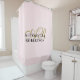 Personalised customised monochrome monogrammed bathroom shower curtain. Elegant gold initial letters in handwritten calligraphy and stylish black name. Feminine girly trendy pastel pink background, clean and chic bathroom accessory. For a minimalist minimal modern home decor style, timeless, classy, beautiful simplicity. Could also become a thoughtful custom housewarming, new homeowner git for a elegant stylish and trendy woman.