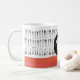 This abstract modern pattern is an original design custom coffe mug ready to personalise with your own monogram. Original art and photography by Ann Powel on business cards. Artwork copyright Ann Powell all rights reserved.