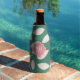 This bottle (or change options for a can) cooler has a pretty leafy pattern and a pink quatrefoil frame for a custom monogram initial.