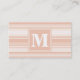 Monogram peach stripes business card