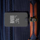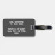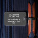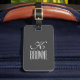 Luggage tag, featuring a customisable monogram brown and white design, based on typography.