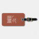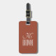 Luggage tag, featuring a customisable monogram design on light brown background, based on typography.