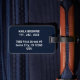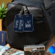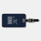 Luggage tag, featuring a customisable monogram navy blue and white design, based on typography.