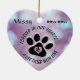 A comforting keychain for the loss of a pet. Artwork features a paw print and heart design with a monogram