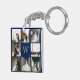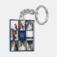 Monogram Photo Collage Navy Blue Key Ring