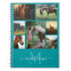 Create your own photo collage notebook by replacing the placeholder images with your own personal pic and add your name + monogram to the calligraphy script templates. Add seven of your favourite photos of you and your pet horse. A unique, typography themed custom monogrammed back to school notebook with a personal touch of 7 of your best photographs on a teal blue background. NOTE: To adjust the placement of the photos navigate to the design tool, picking the photo that needs to be adjusted from the list of photos on the left side, and click the crop button on the right.
