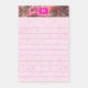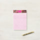 This post-it note features a charming design of pink houses nestled in a whimsical fantasy forest. At the centre, there is a pink square that displays initials or a monogram, set against a matching pink backdrop adorned with stylish slashes and lines. This practical stationery accessory is ideal for women in an office environment and is perfect for college students, as well as middle and high schoolers. It's an excellent choice for anyone who loves pink-themed items.