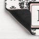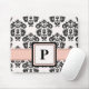 A pretty monogrammed pink and black damask mouse pad can be customised and personalised with your monogram initial. Design © Chrissy H. Studios, LLC. All Rights Reserved.