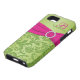 Monogrammed modern green and hot pink floral damask Case-Mate Vibe™ iPhone 5 Case with PRINTED ribbon and PRINTED jewel brooch. Customise it to add your name, initial, or other text. If you need assistance, email niteowlstudio@gmail.com.