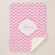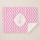 Monogram Pink And White Chevron Sherpa Blanket