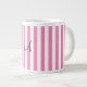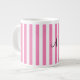 Monogram pink and white stripes large coffee mug