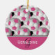 Monogram Pink Black Soccer Ball Pattern Ceramic Tree Decoration