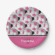 Monogram Pink Black Soccer Ball Pattern Paper Plate
