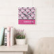 Monogram Pink Black Soccer Ball Pattern Square Wall Clock
