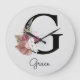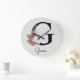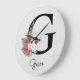 Monogram Pink Boho Girly Floral Initial G Large Clock