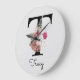 Monogram Pink Boho Girly Floral Initial T Large Clock