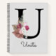 Monogram Pink Boho Girly Floral Initial U Notebook