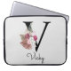 Monogram Pink Boho Girly Floral Initial V Laptop Sleeve