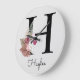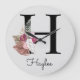 Monogram Pink Boho Initial H Large Cl Clock