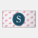 Brighten your workspace with this customisable deskmat, featuring a whimsical pattern of watercolor pink flamingos and your choice of a cute monogram or business logo in white over a navy blue background. Both stylish and practical, it’s the perfect addition to your desk decor at home, school, or the office.