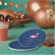 A gift featuring an illustration of a pink flamingo. Background is navy blue quatrefoil. Personalise with your monogram inside circle on flamingo's body.