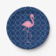 Monogram Pink Flamingo Navy Quatrefoil Paper Plate